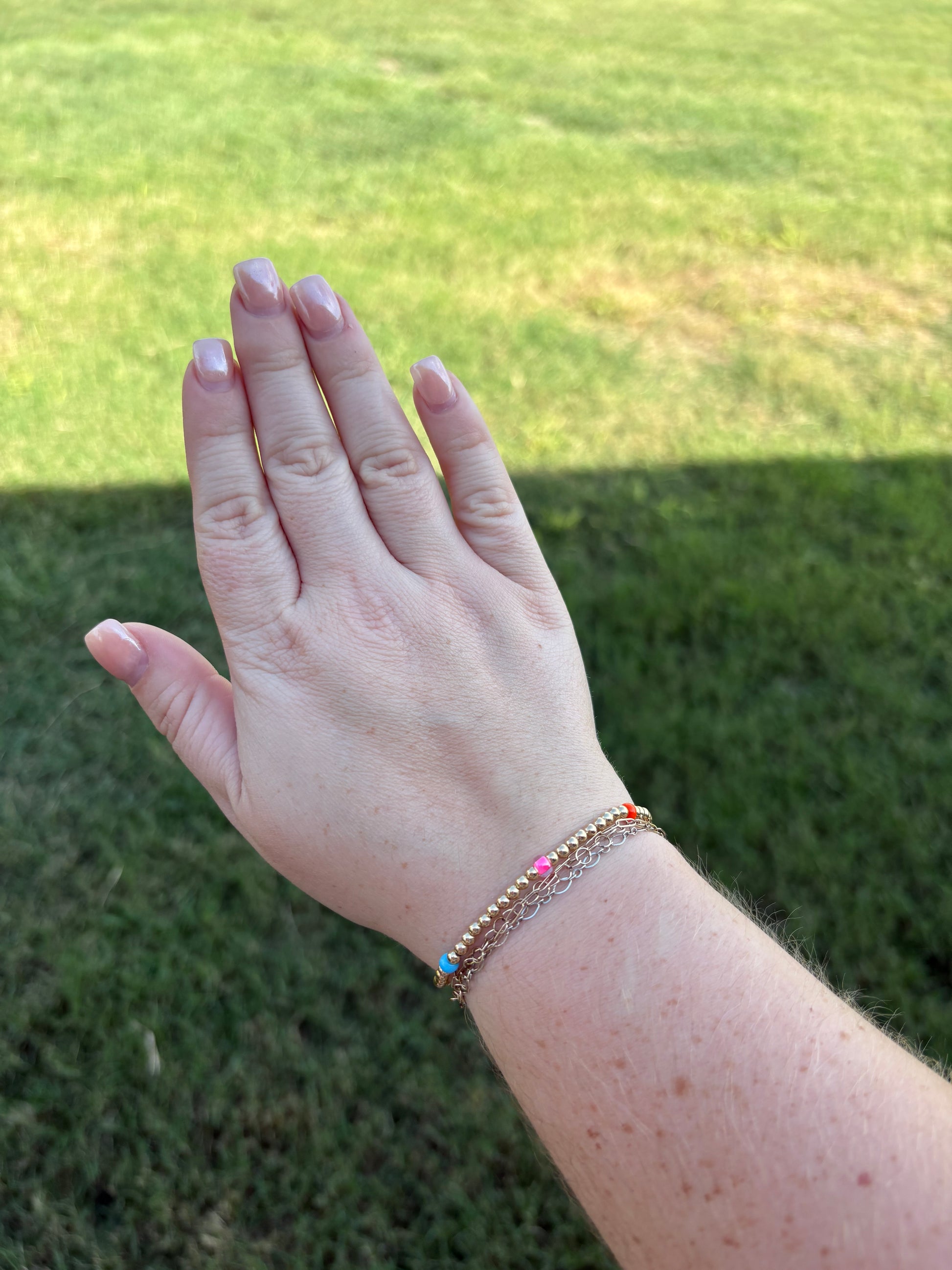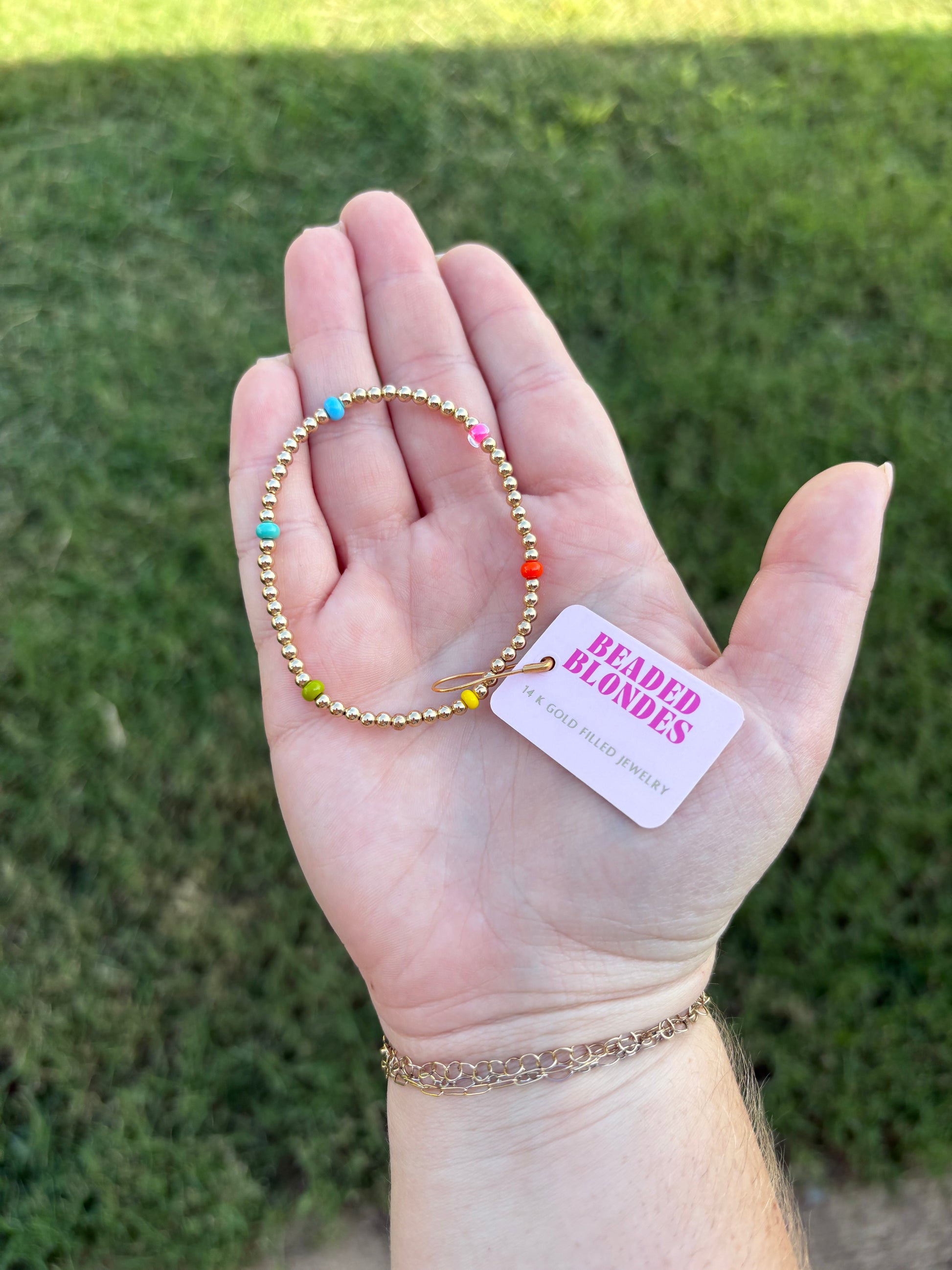 This 14K gold filled bracelet is waterproof, sweatproof, and fun-proof! Plus... it's colorful!