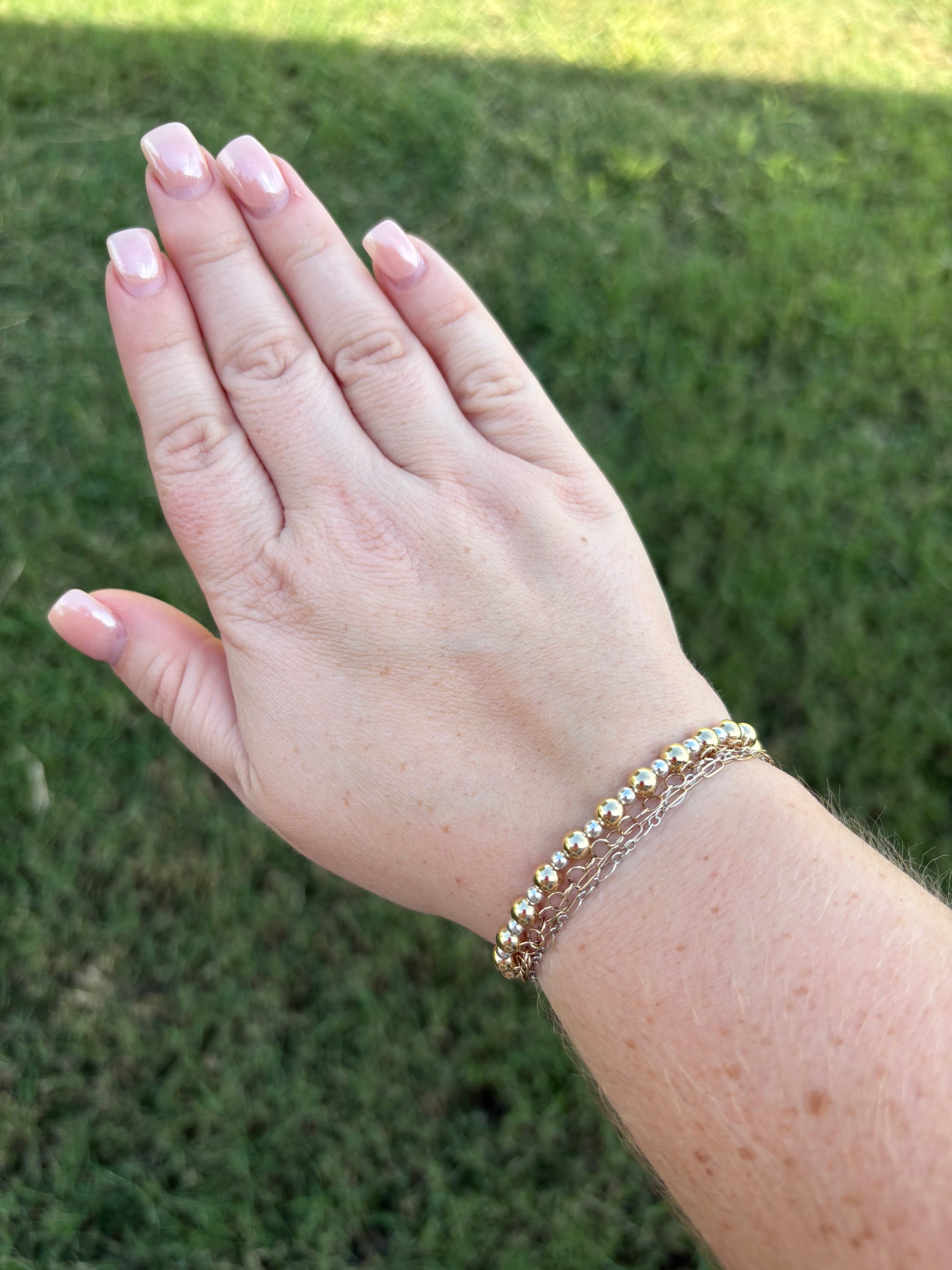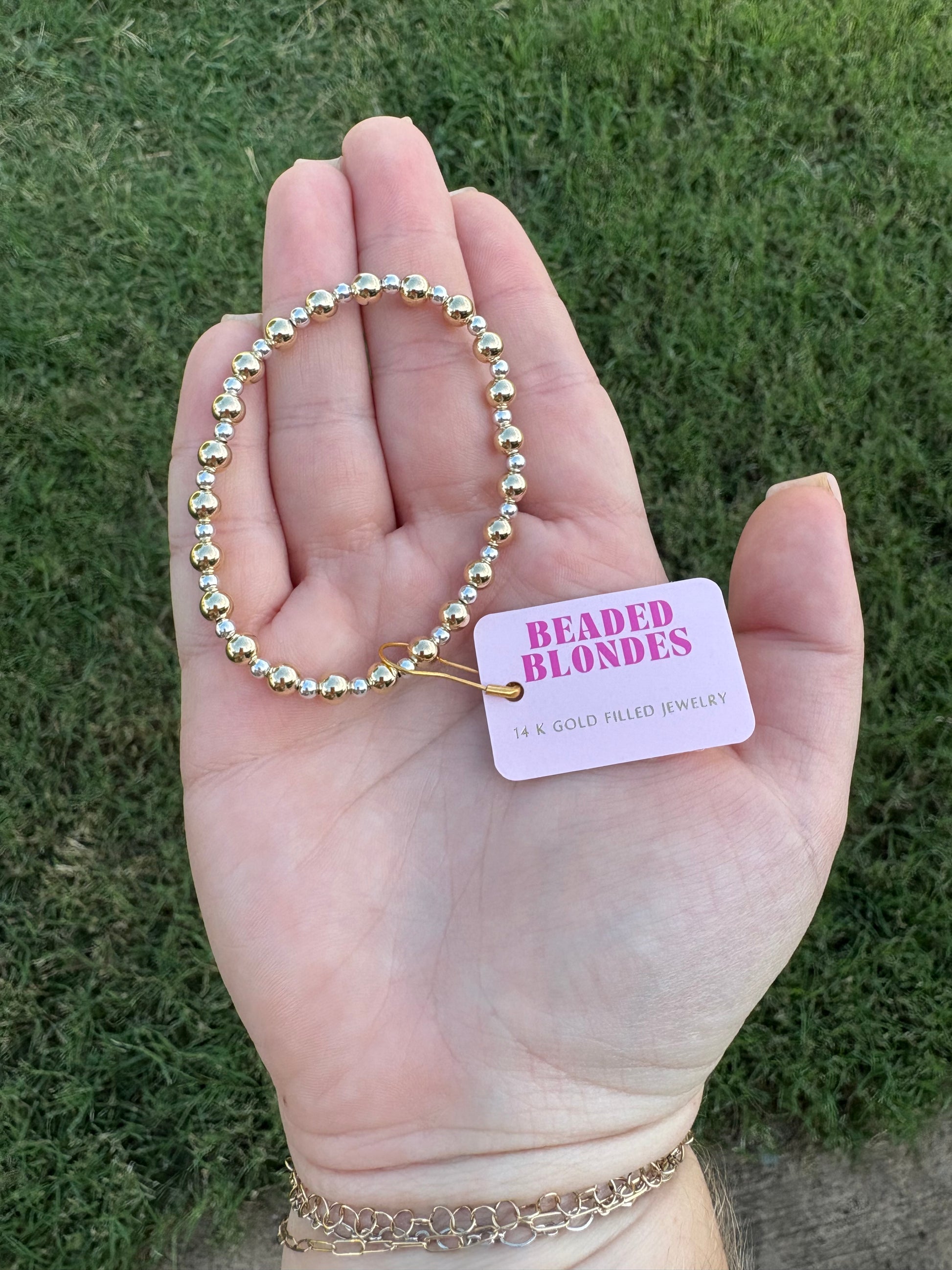 This 14K gold filled and silver filled bracelet is waterproof, sweatproof, and fun-proof!
