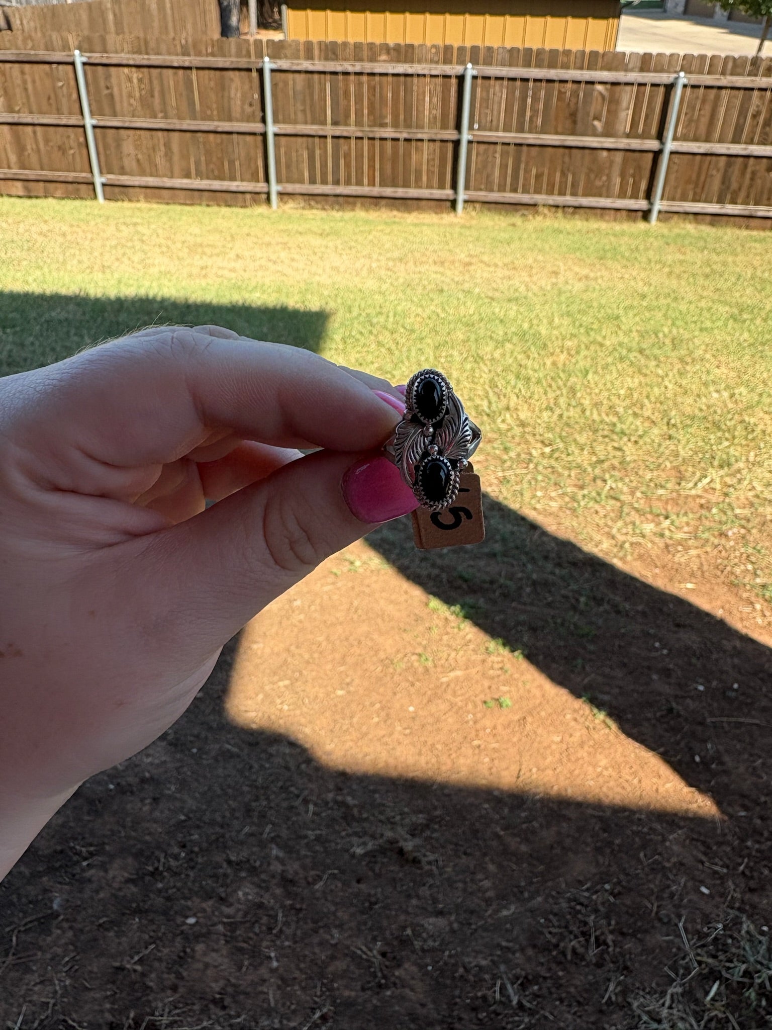 Black Onyx 2-Stone Feather Ring - SIZE 6.5