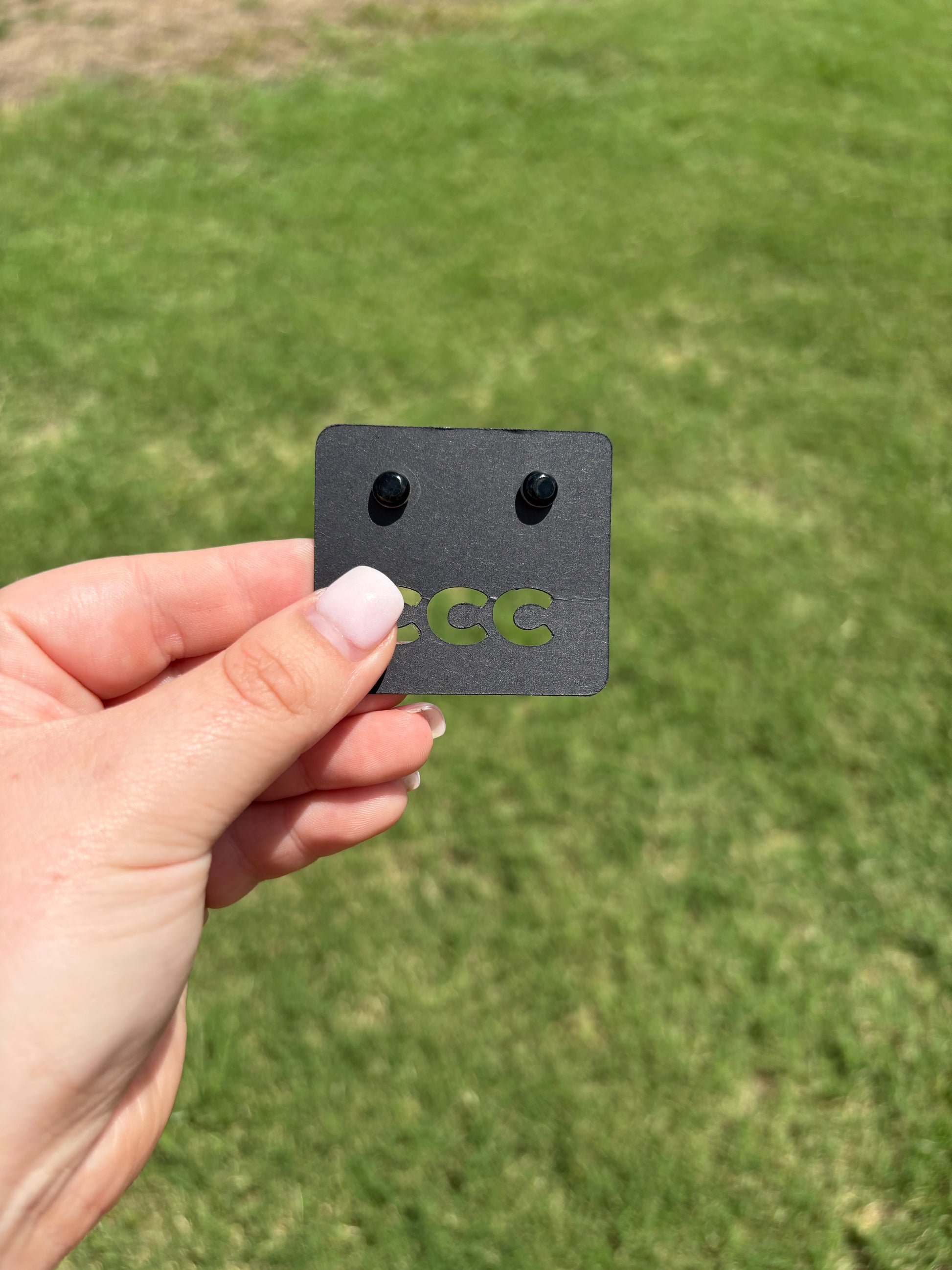 Black Onyx XS Inlayed Button Circle Earrings