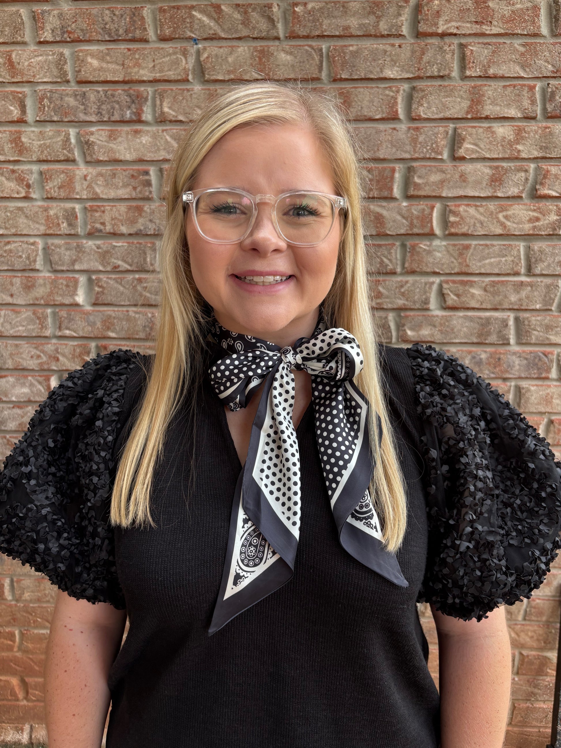 Black Patterned Reversible Twilly Scarf