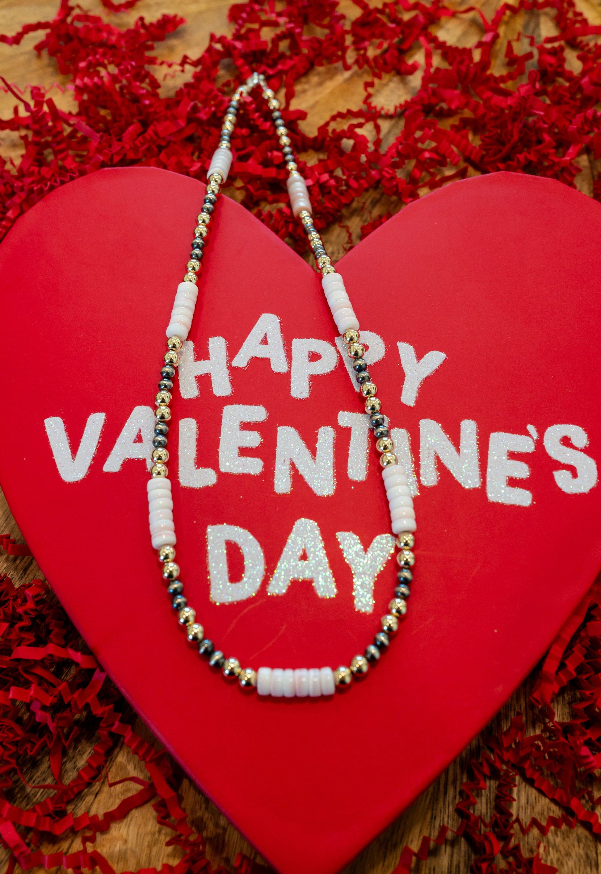 It's Love Mixed Metal and Pink Conch Necklace - 18" MAGNETIC CLASP