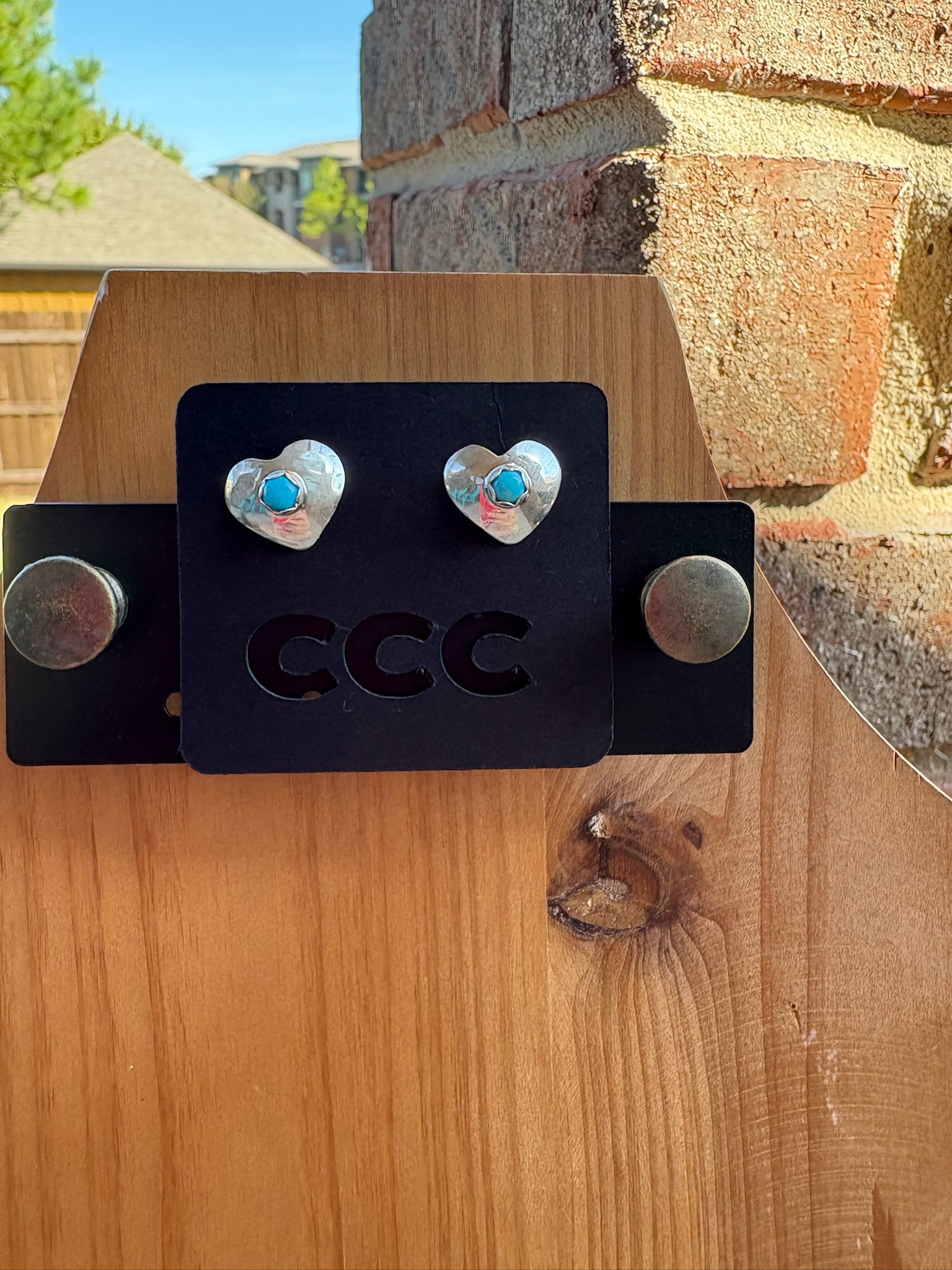 Sterling and Turquoise Smooth Heart Mini Earrings