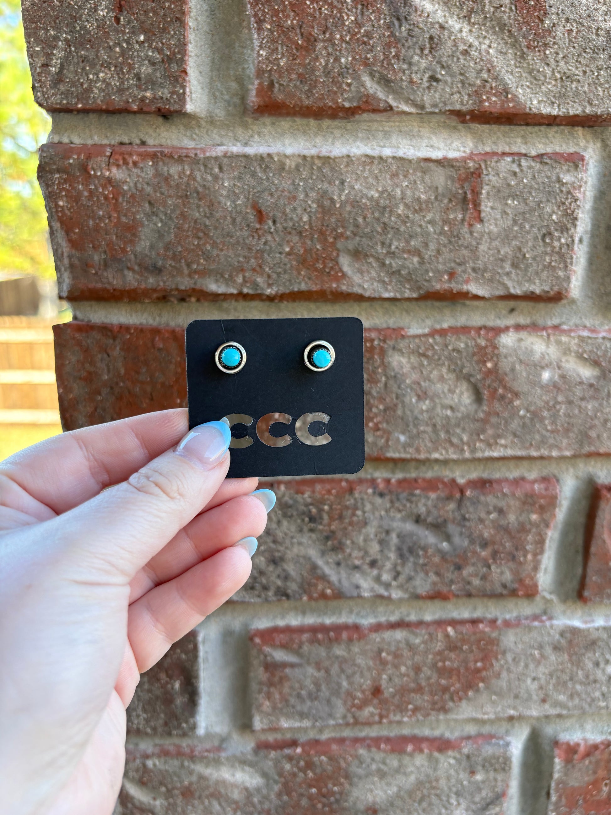 Turquoise Tall Bezel Raised Edge Studs - Small